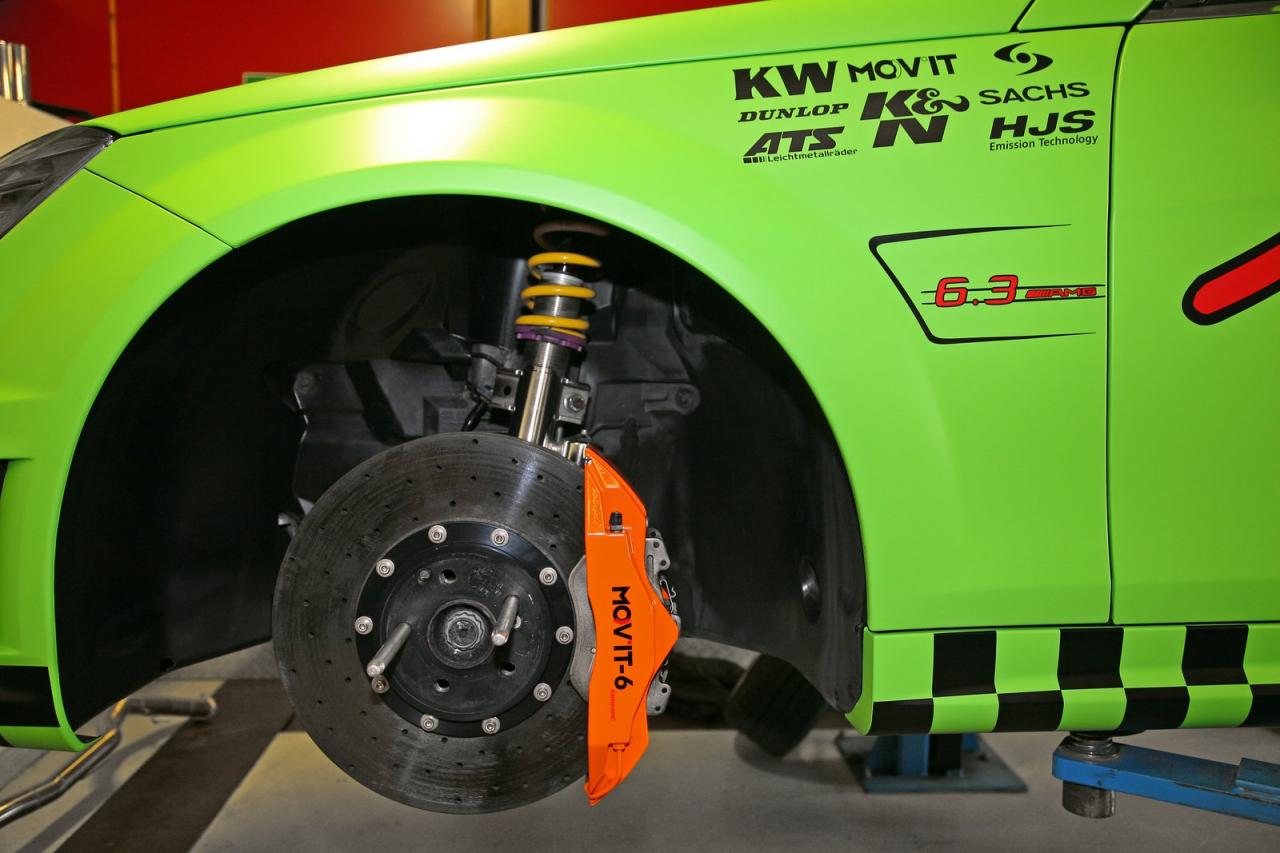 For export, the Aachen-based tuning experts developed an 8-piston High-performance brake system for front axle, which is driving the increased performance requirements. The 8-piston fixed calipers on the right and left and the 8-piece set of brake pads and the Caliper brackets together to ensure that the "Bavarian coupe" quickly and safely Speed ??delayed. The dynamics is also with the AC Schnitzer
